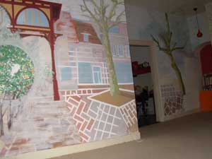 Opening expositie: Openingswoord Beste mensen, Hartelijk welkom bij deze opening. Elke opening is feitelijk een markering in een proces. Er is van alles aan voorafgegaan en er zullen dingen volgen. De opening is het moment waarop we bij elkaar komen en ons dit realiseren. Hartelijk welkom. Twee keer, want we hebben te maken met een dubbele opening. Op de eerste plaats openen we de expositie van de muurschilderingen van Anna Niederbremer. En daarmee openen we ook Springplank 2007. Vijf jonge kunstenaars zijn uitgenodigd om in Op13 kunst te maken en of te installeren. Anna is daarvan de eerste. Ik vroeg me af of niet de essentie van het werken van kunstenaars is dat je alles nieuw, onbevangen, als was het voor de eerste keer, aanpakt. In die zin zou je kunnen zeggen dat ook de ervaren kunstenaars 'jong' zijn, of in ieder geval op een 'jonge' manier werken. Je komt dan zelfs tot de paradox dat jonge kunstenaars in zekere zin een voorsprong hebben, omdat voor hen alles vanzelfsprekend nieuw is. De afgelopen weken hebben Suzanne en ik in ieder geval kunnen zien dat Anna uiterst consciëntieus, integer en met veel doorzettingsvermogen heeft gewerkt. Wat je nu ziet is een moment in dat werkproces. Invalshoeken is de titel. Op de muren is afgebeeld dat waar je met je rug naar toe staat. Eenmaal met dit concept begonnen blijkt de omgeving sneller te veranderen dan met schilderen was bij te houden: bomen werden gesnoeid, struiken uitgegraven, een vogel vloog weg. Het plan verandert gaandeweg. We hebben oprecht de vragen van de krant en de Deventer televisie beantwoord. Maar het doorkijkje naar de IJssel is er niet gekomen. En ook de context verandert. Want wat als tijdelijke muurschildering is opgezet heeft tot een resultaat geleid waarvan al verschillenden zich verbijsterd afgevraagd hebben of dit nu werkelijk over twee weken weer witgeschilderd moet worden. Tot slot nog een opmerking van huishoudelijke aard. We betalen dit allemaal uit eigen zek. Maar we betalen het veel liever uit andermans zak. Als u zich daartoe aangetrokken voelt: bij het naar buiten gaan vindt u rechts de fooienpot. Als u het prettig vindt dat wij dit organiseren kunt u uw bijdrage daarin kwijt. Luc Ambagts